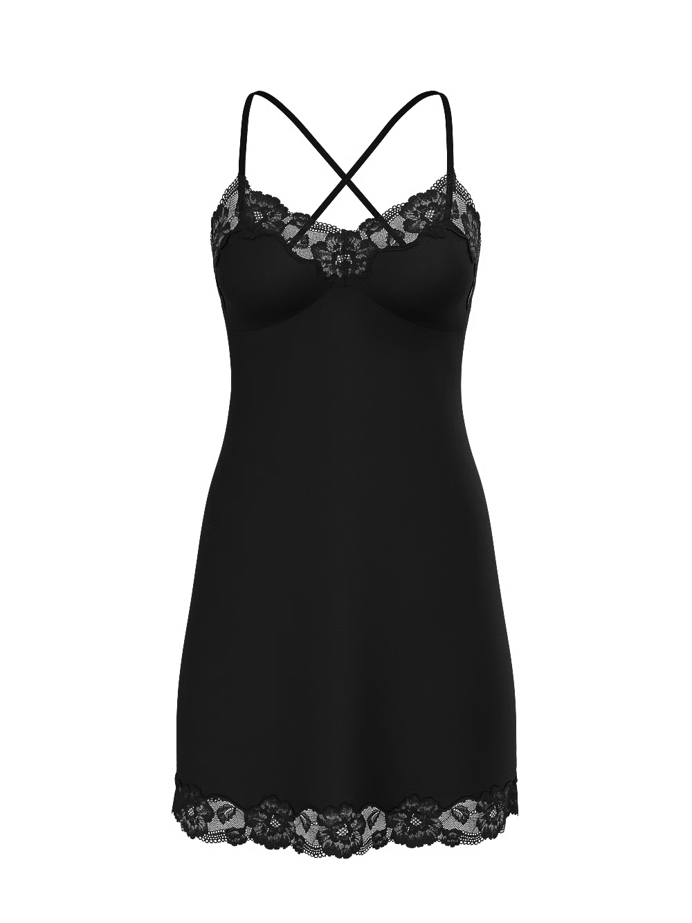 Повышенный комфорт. Это супермягкое мини из модала украшено нежным кружевом спереди и сзади, а также по подолу. Вырез на спине добавляет ещё один соблазнительный штрих.