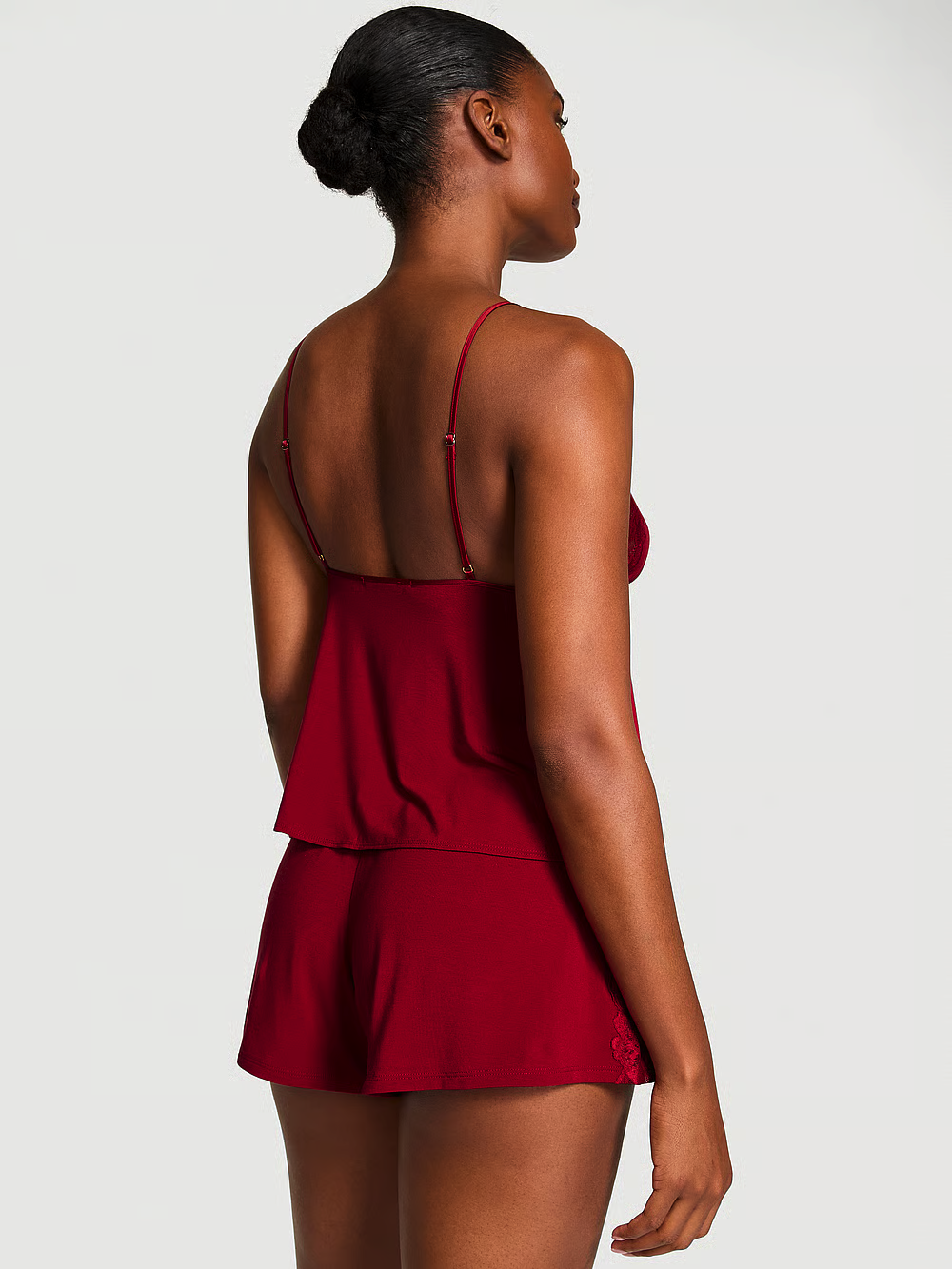 Роскошное кружево добавляет романтики нашему фирменному, любимому покупателями модалу, который ценится за свою приятную на ощупь, мягкую текстуру. Топ свободного кроя с глубоким вырезом добавляет немного сексуальности этому удобному комплекту.