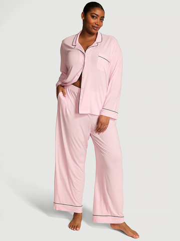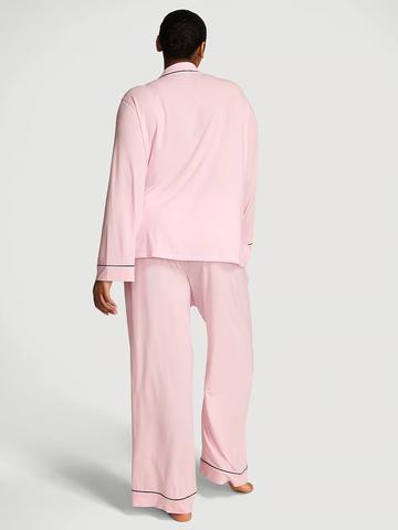 Этот удобный комплект состоит из верха на пуговицах спереди и брюк с легкими завязками из нашего фирменного, любимого клиентами модала, с маслянистым ощущением и идеальным количеством эластичности.