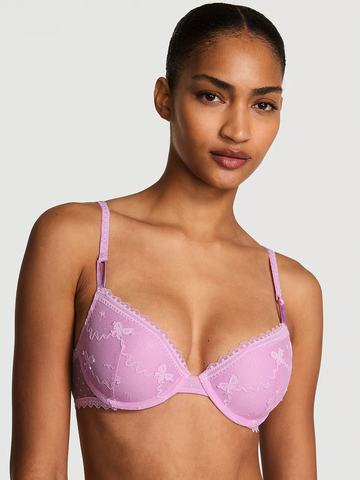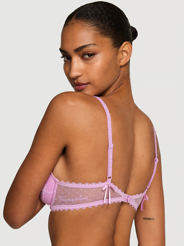 Нежный бантик. Этот бестселлер, бюстгальтер Demi Bra, украшенный вышивкой в виде бантиков по всей поверхности, добавит бесспорно женственности вашему повседневному гардеробу. Сетчатые вставки в горошек на боковых частях – еще один очаровательный штрих, а завершает образ наша великолепная надпись с логотипом.