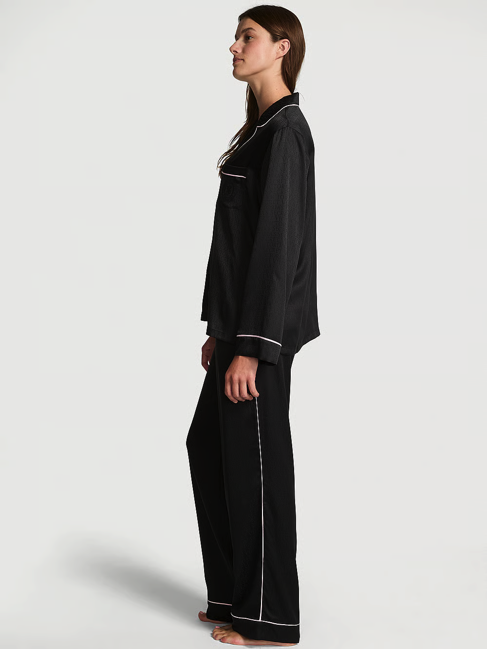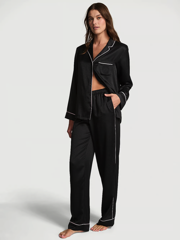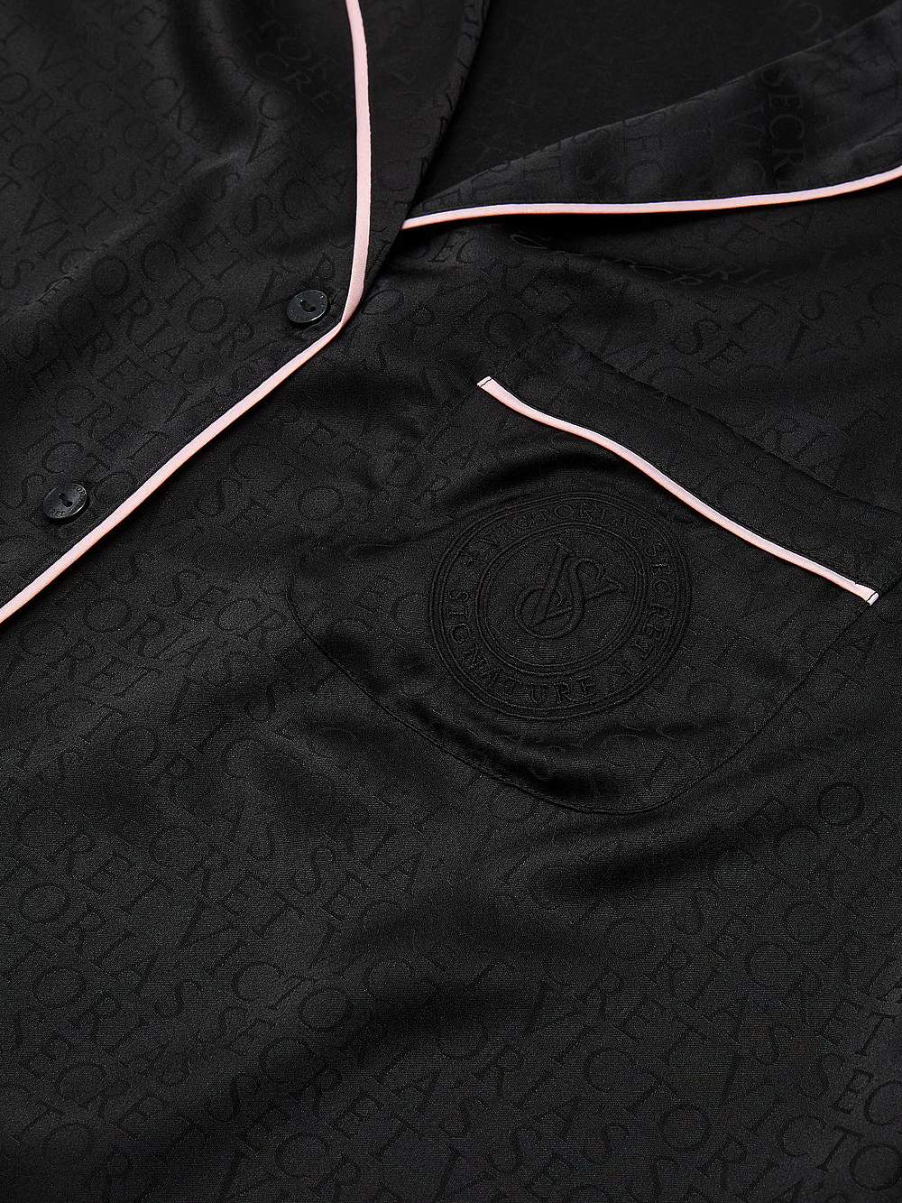 Принесите немного комфорта перед сном с этой сатинвой пижамой, вдохновленной мужской одеждой. Подписано нашим логотипом.