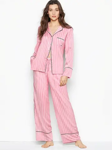 Принесите немного комфорта перед сном с этой сатинвой пижамой, вдохновленной мужской одеждой. Подписано нашим логотипом.