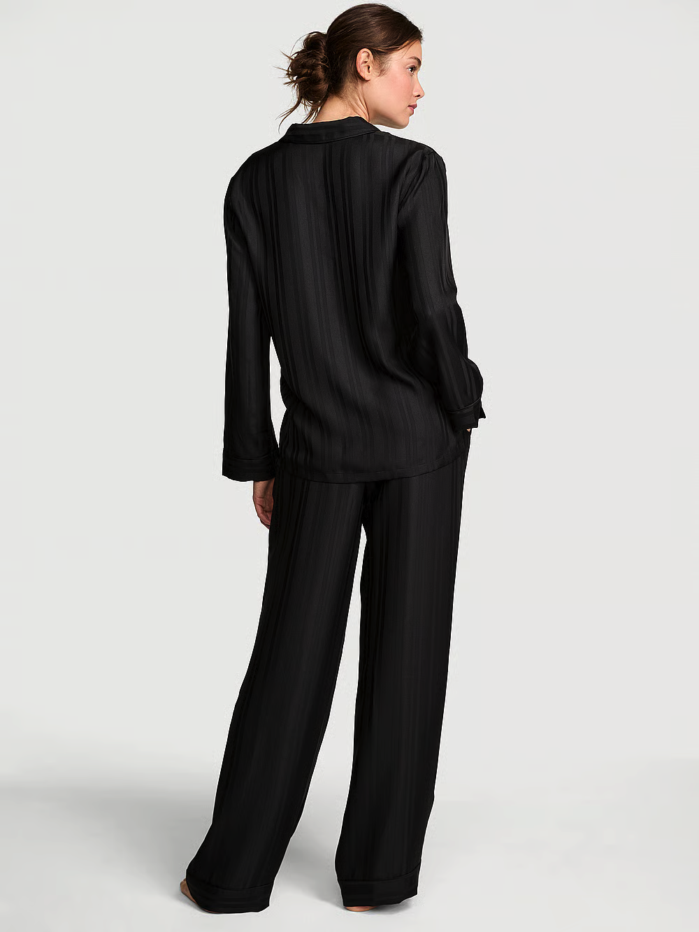 Принесите немного комфорта перед сном с этой сатинвой пижамой, вдохновленной мужской одеждой. Подписано нашим логотипом.