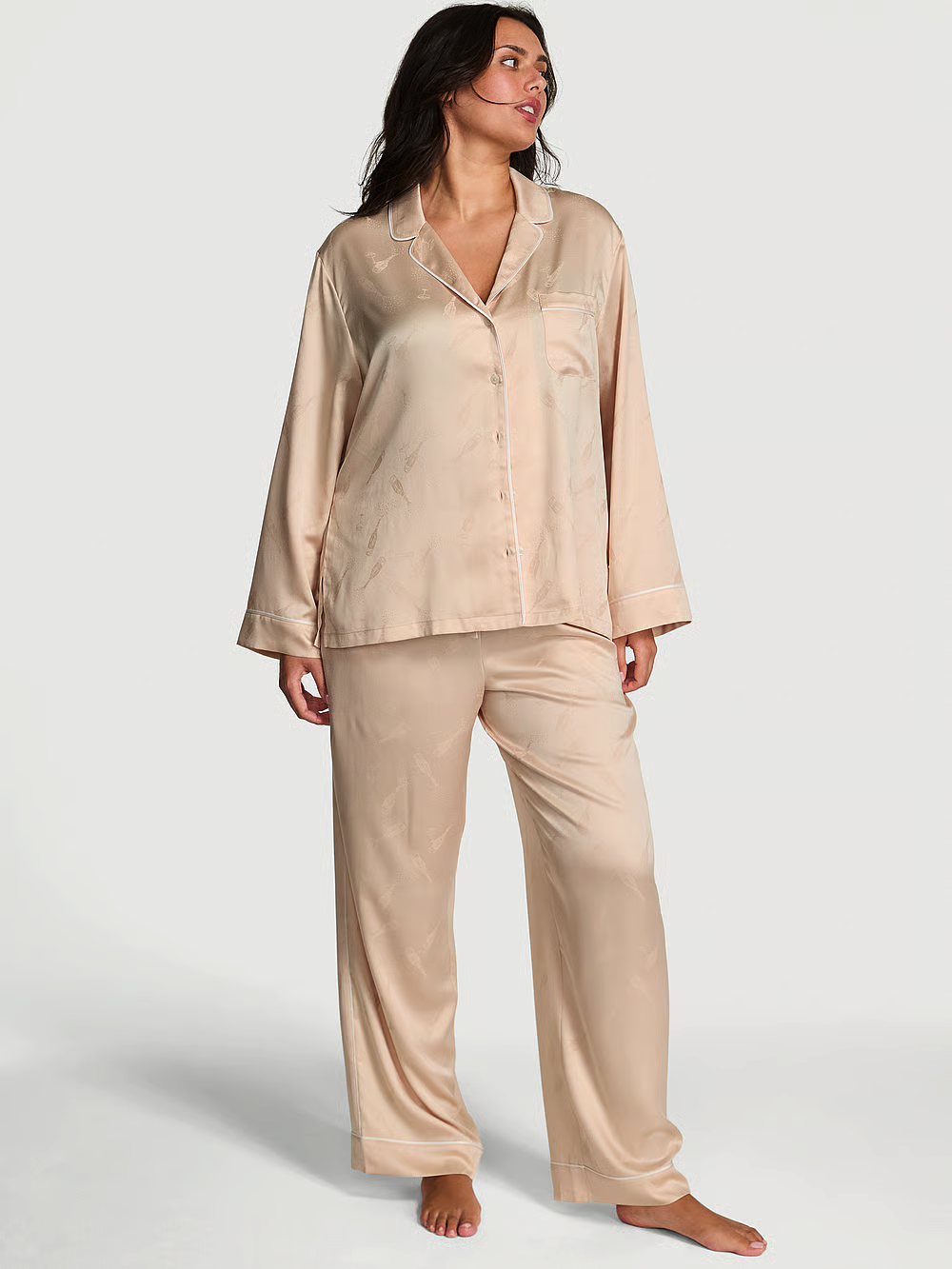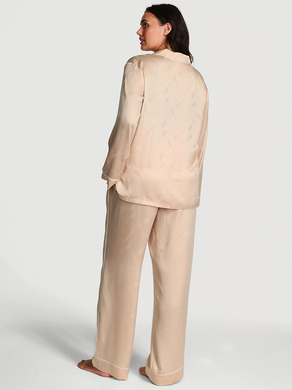 Принесите немного комфорта перед сном с этой сатинвой пижамой, вдохновленной мужской одеждой. Подписано нашим логотипом.