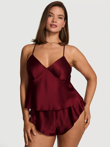 Этот глянцевый комплект, ставший классикой, отделан нашим культовым розовым кружевом для создания женственного образа. Сочетайте майку с любимыми джинсами и блейзером, чтобы создать ещё больше стильных образов.