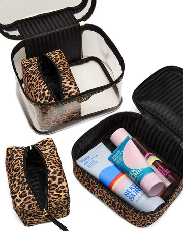 Этот фирменный футляр для поезда в полоску идеально подходит для хранения всех необходимых косметических принадлежностей для длительного пребывания.